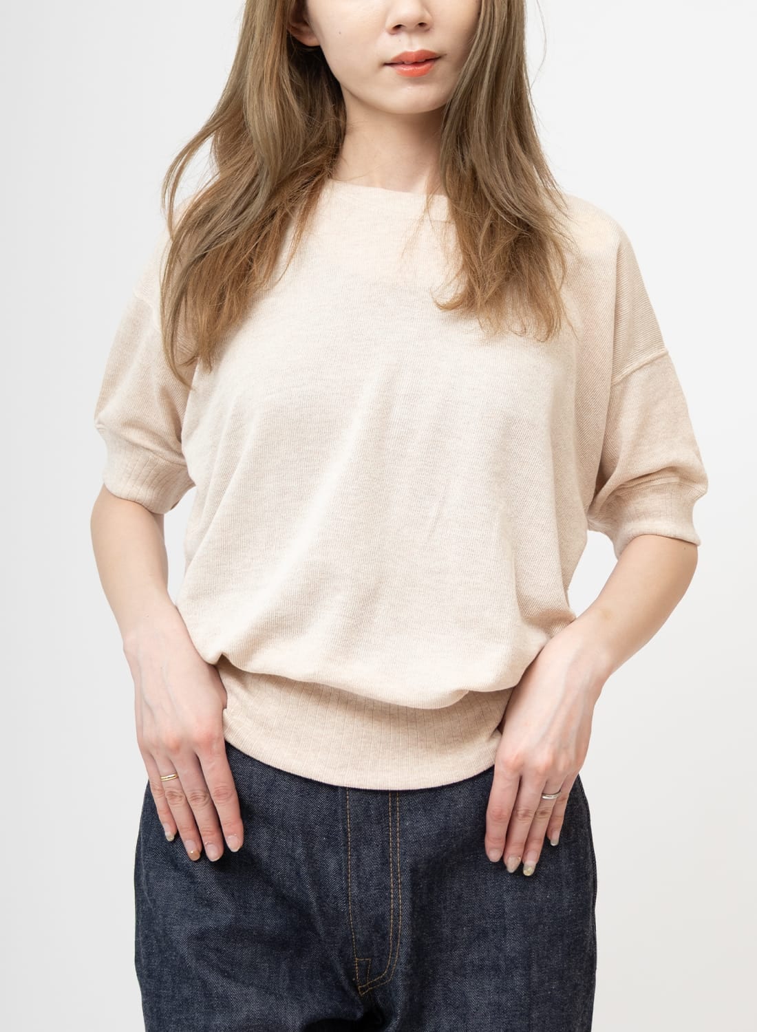 コットン カシミヤ リブ タイト クルー ネック ロングスリーブ Tシャツ