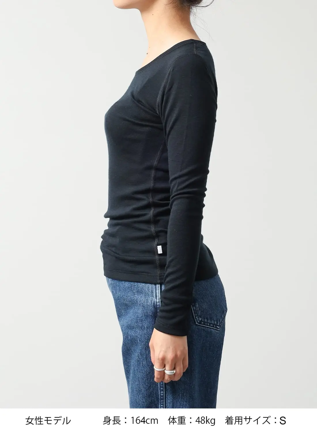 肉感はインナーとしては中厚程度、通常のニットだとすると薄手。