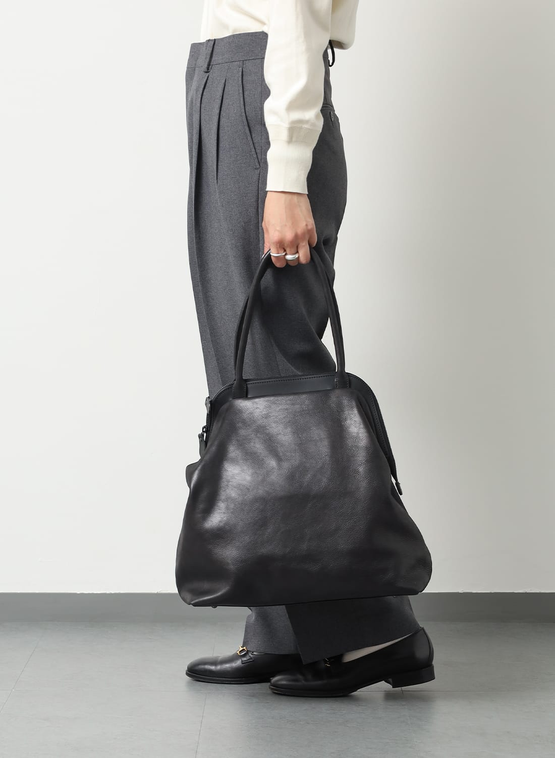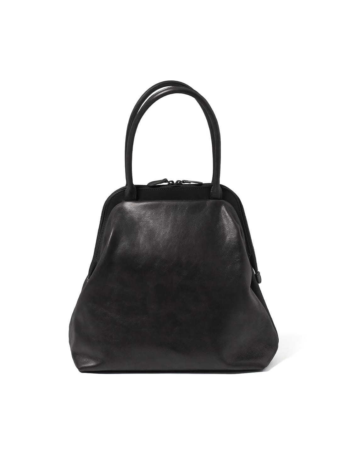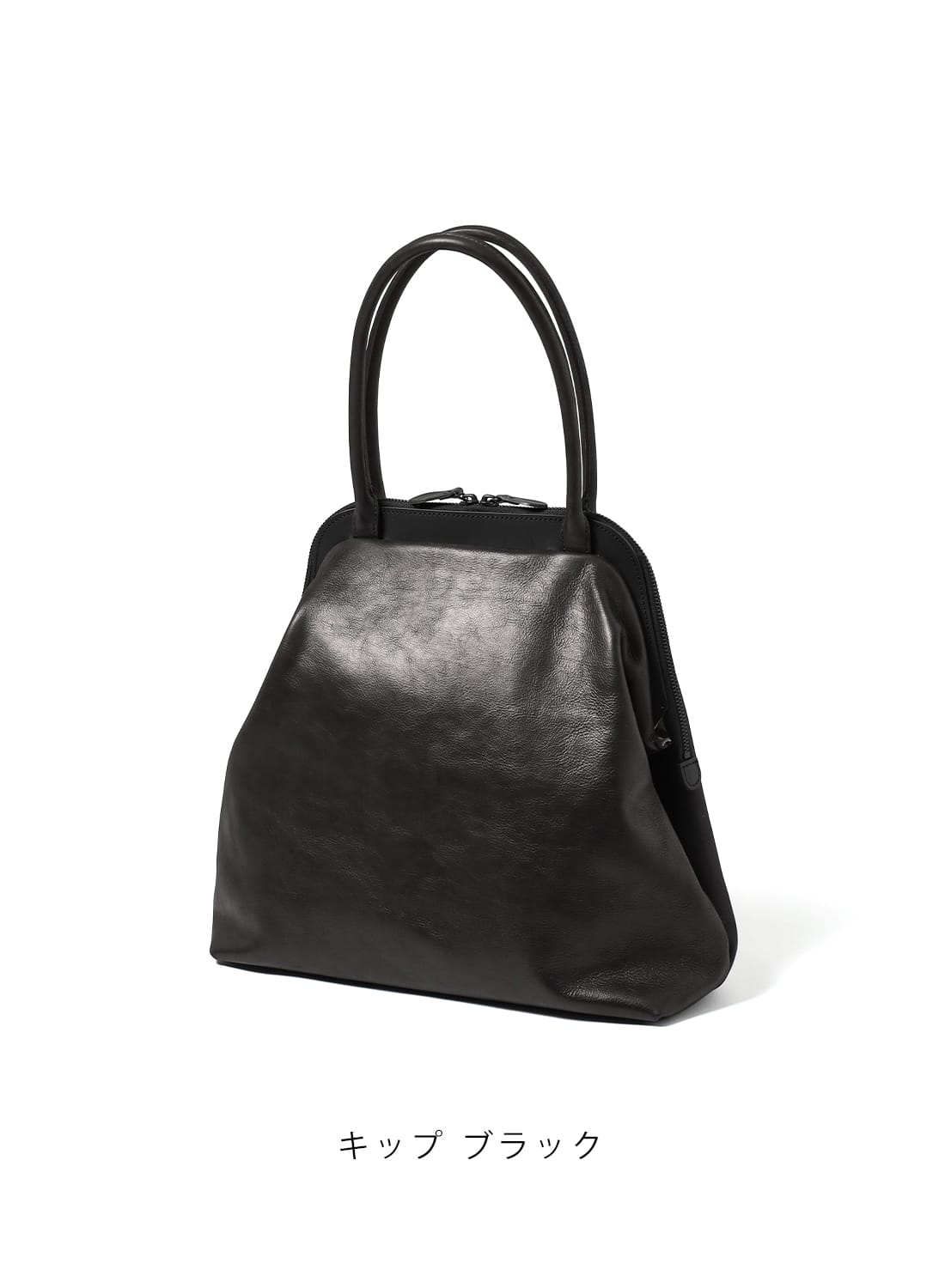 がま口のような佇まいと、レザートートの機能性を兼ね備えた一品。