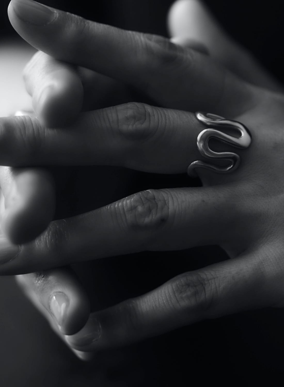 寄せては返す波のような躍動感ある曲線が、手元で光のリズムを奏でる「Sequence Ring(シークエンス リング)」。