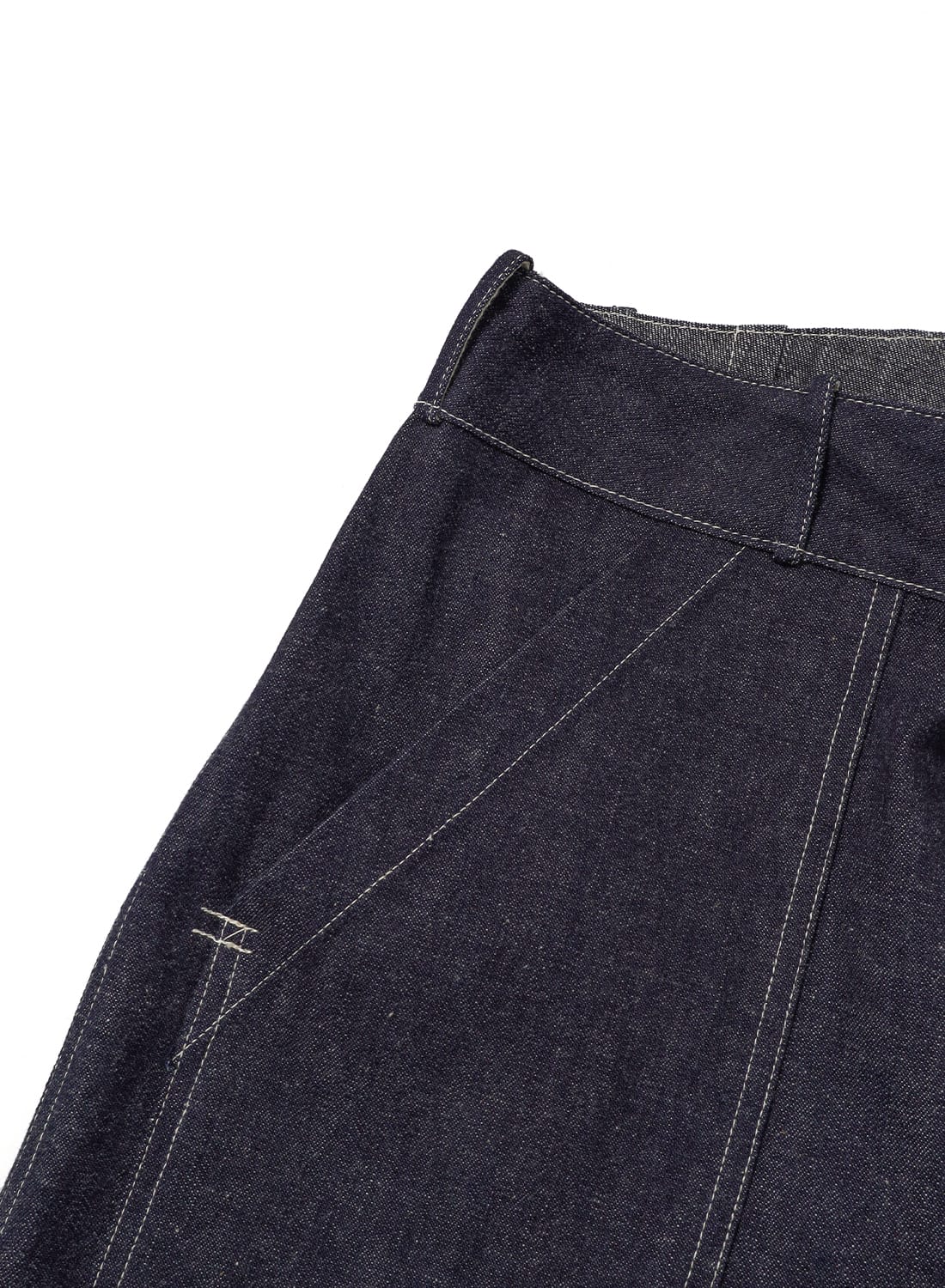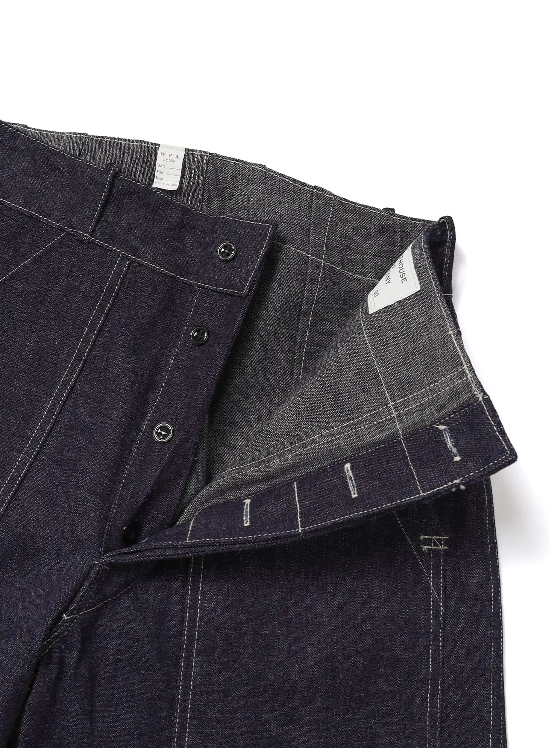 縫製仕様においても当時のワークウエアで一般的だった還縫いではなく、本縫いが多用されている点が確認されており、縫製作業そのものに重点が置かれていたことがうかがえる。